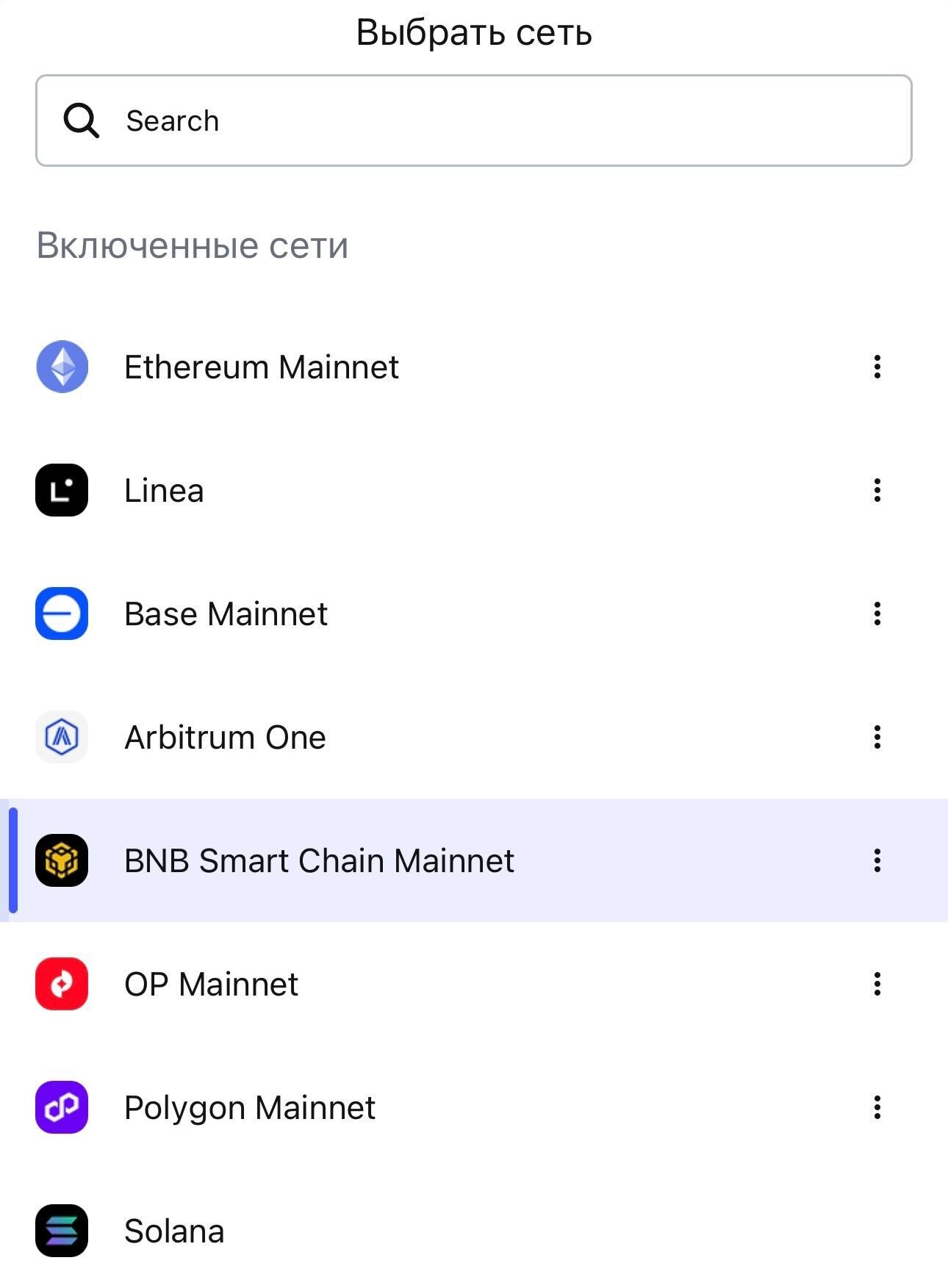 - Выбери BNB Smart Chain Mainnet