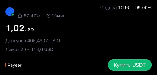 - Просмотри список предложений от продавцов и выбери подходящий вариант → Нажми «Купить USDT»