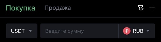 - В разделе «Покупка» выбери токен USDT и укажи фиатную валюту