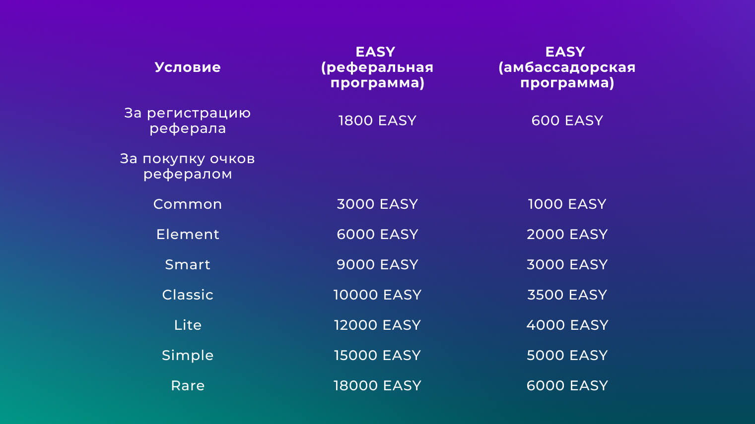 Ты также можешь получать EASY за участие в реферальной и амбассадорской программах: